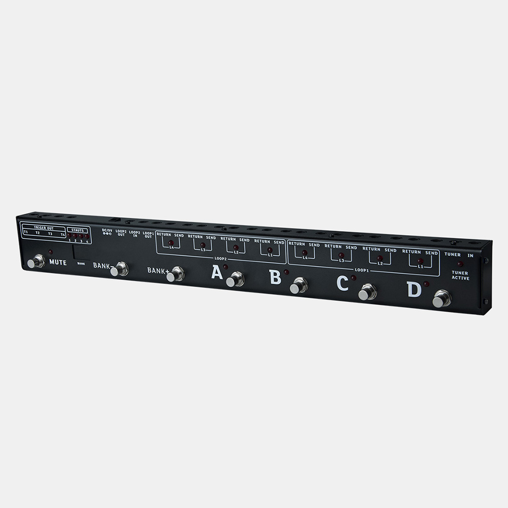 8 pedál vezérelhető egyszerre, de lehetőség van két csoport (2x4 pedál) létrehozására, így az első csoport (LOOP1) köthető pl. az erősítő bemenetére,