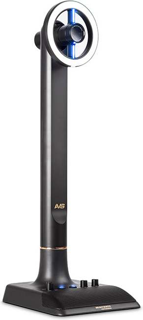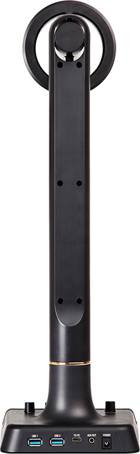Az AVS központi tornyát aprólékos műgonddal tervezték meg a kézre álló használat érdekében, minden egyes kezelőszerv a streamer/podcaster keze ügyében található, azonnal elérhetőek az üzemeltetést megkönnyítő funkciók. A LED lámpa dimmere, a fejhallgató hangerő szabályzója és kimeneti csatlakozója, a mikrofon némító gombja, a kamera ki/bekapcsoló gombja és a PC/MIC balansz szabályzó potméter mind egy helyen található. A torony hátsó panelján sorakoznak az USB csatlakozók, egy C-típusú a számítóéppel való összekötéshez, két 3.0-ás külső perifériák csatlakoztatásához. Végül a tápegység csatlakozó is itt található (12VDC). Ez a helytakarékos, felhasználóbarát kialakítás egyedi megjelenéssel párosul, az AVS használata így rendkívül egyszerű és intuitív, teljesítménye pedig kompromisszumoktól mentes.