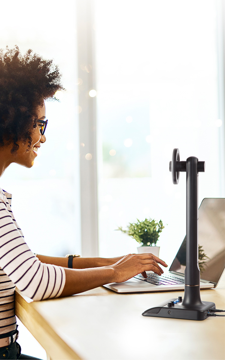 Minden-az-egyben Audio/Video stream rendszer USB-C csatlakozóval, Full HD webkamera, USB kondenzátor mikrofon, dimmelhető LED gyűrűs lámpa és beépített USB Hub.