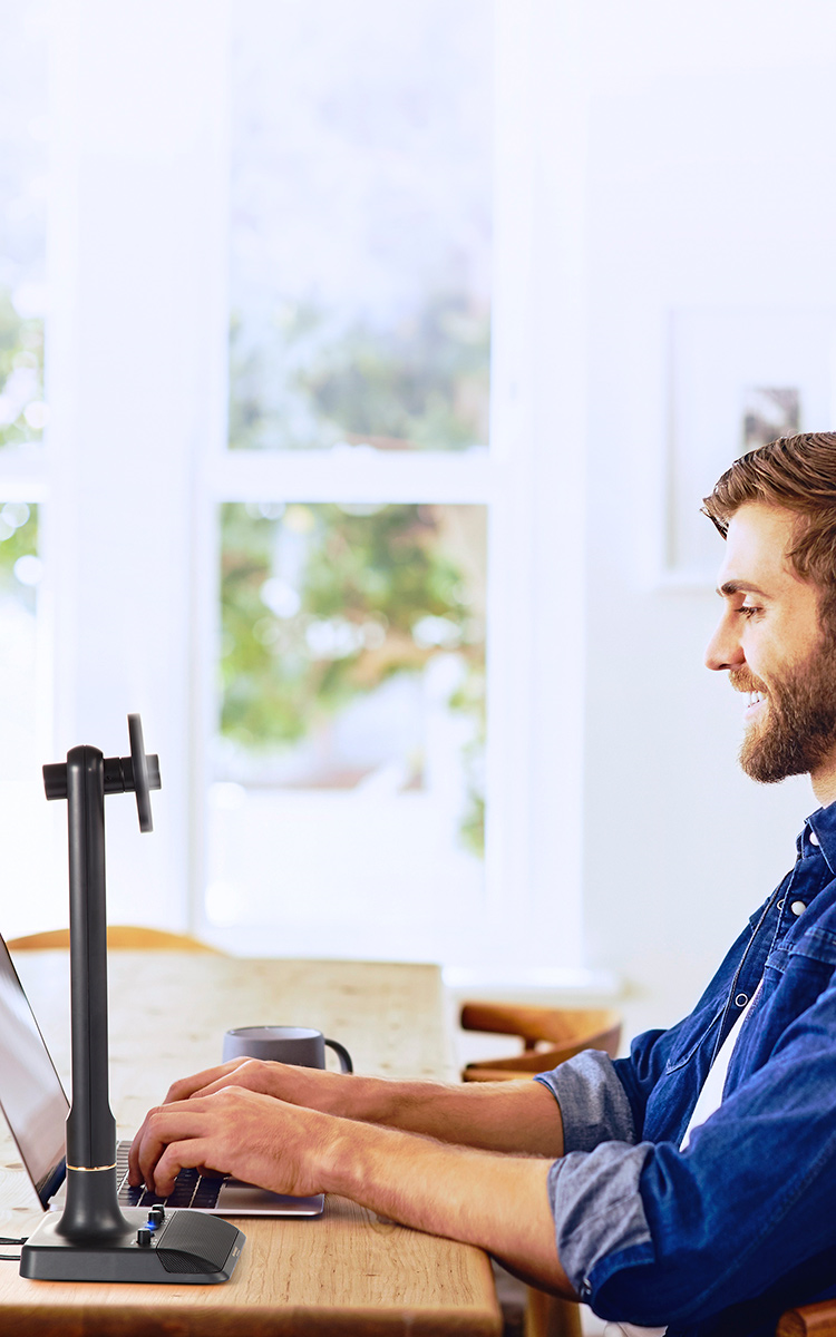 - Magas minőségű kondenzátoros USB felületmikrofon (48kHz/16-bit konverzió) a talapzatba beépítve