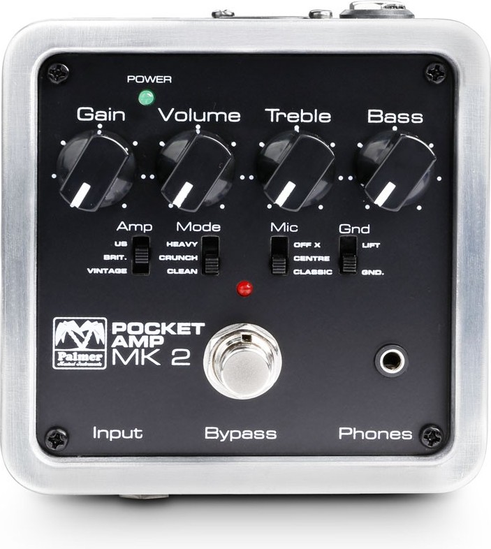 A Palmer Pocket Amp MKII új inkarnációja a valódi csöves erősítő hangzások kibővített választékát kínálja a teljesen tisztától a maximálisan kihajtott torzításig. A háromállású választókapcsolók az erősítő típusát, a gain struktúráját és a mikrofon szimulációt szabályozzák, a felturbózott áramkörök a vintage és modern, valamint saját hangzások egyszerű konfigurálását teszik lehetővé a műveleti erősítők kiváló jel/zaj viszonya mellett. A még nagyobb rugalmasság érdekében a Pocket Amp MKII drive és kimenő szint master vezérlést, valamint kétsávos EQ-t is kínál, amelyeket kifejezetten gitáros felhasználásra szabtak testre.