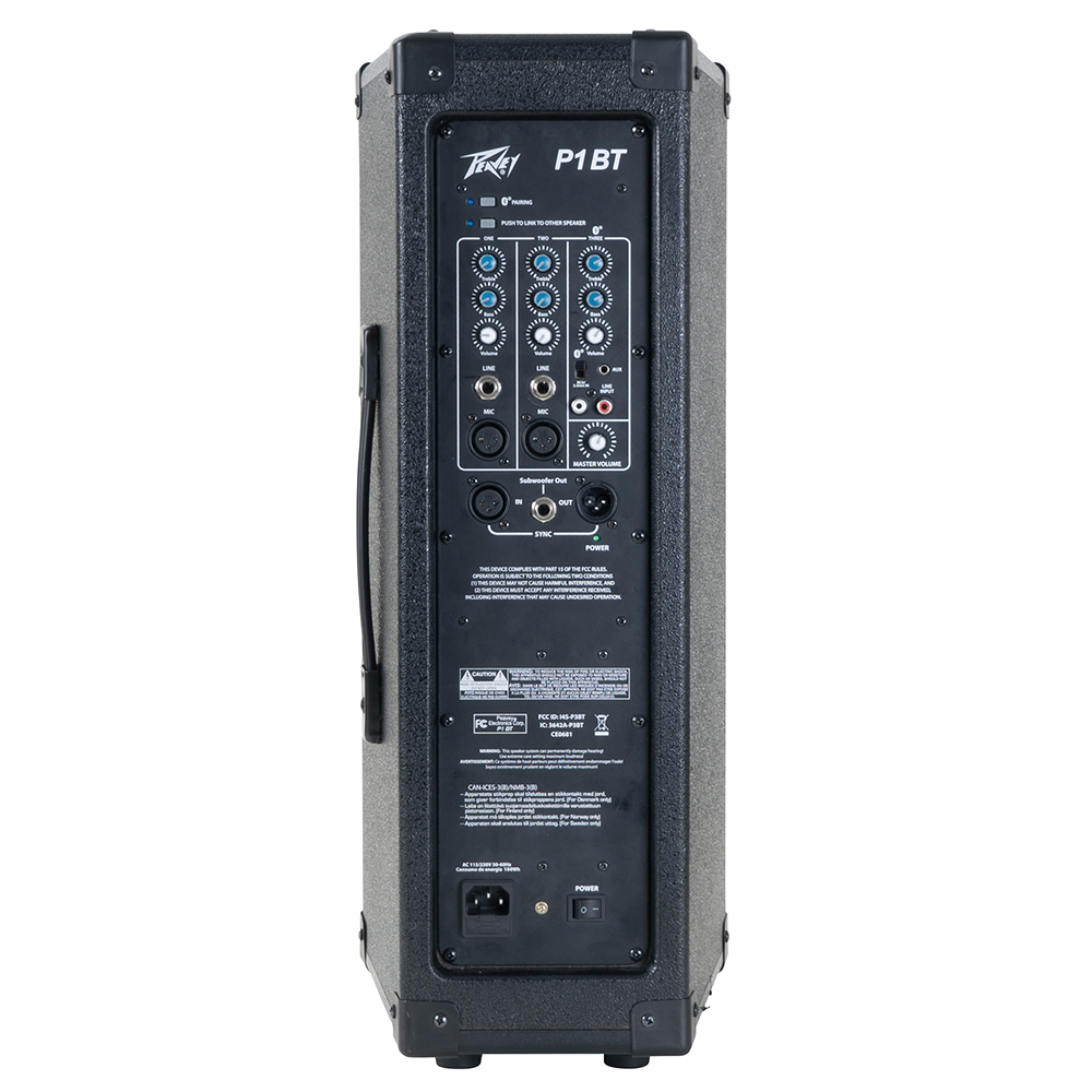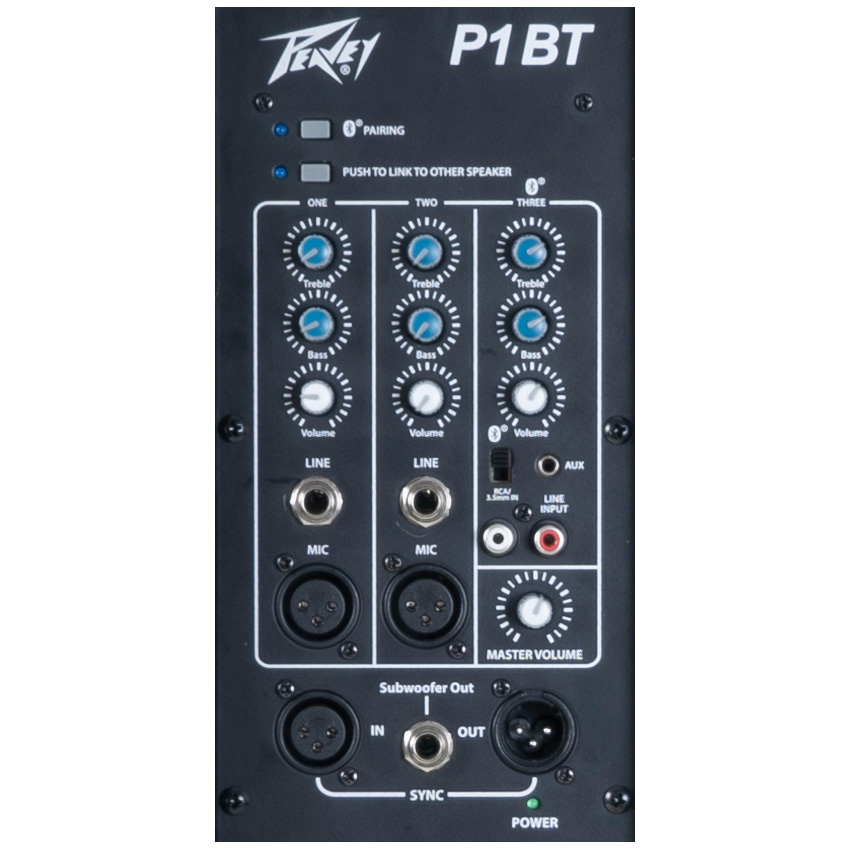 A hátlapon található, háromcsatornás mixer dedikált kétsávos equalizert és hangerőszabályzót tartalmaz. Az 1. és 2. csatorna XLR és vonal bemenettel, a 3. csatorna pedig Bluetooth csatlakozással, RCA és 1/8" AUX bemenettel is rendelkezik. Ezen kívül szerepel egy master hangerő gomb, egy 1/4" külső mélynyomó csatlakozó, és a más egységekhez XLR-en keresztüli kapcsolódás lehetősége. Két P szériás egység egy gombnyomással összekapcsolható sztereóban.