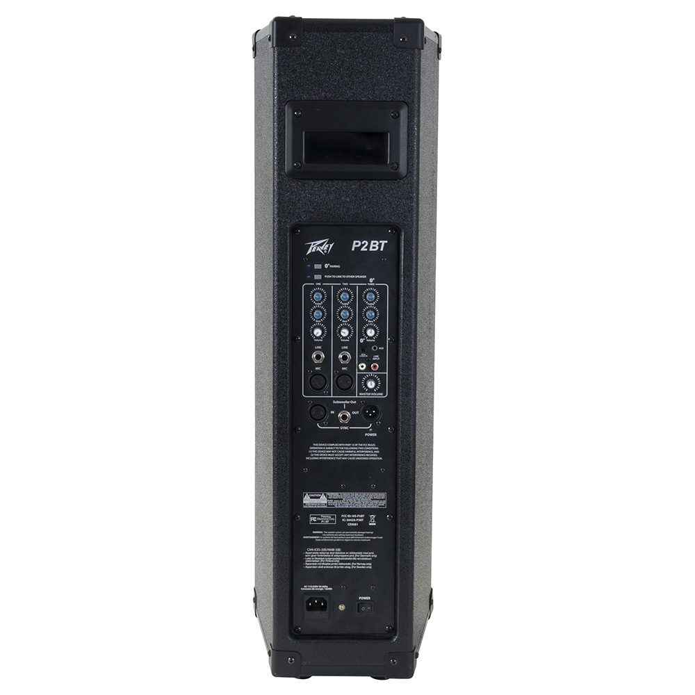 A hátlapon található, háromcsatornás mixer dedikált kétsávos equalizert és hangerőszabályzót tartalmaz. Az 1. és 2. csatorna XLR és vonal bemenettel, a 3. csatorna pedig Bluetooth csatlakozással, RCA és 1/8" AUX bemenettel is rendelkezik. Ezen kívül szerepel egy master hangerő gomb, egy 1/4" külső mélynyomó csatlakozó, és a más egységekhez XLR-en keresztüli kapcsolódás lehetősége. Két P szériás egység egy gombnyomással összekapcsolható sztereóban.