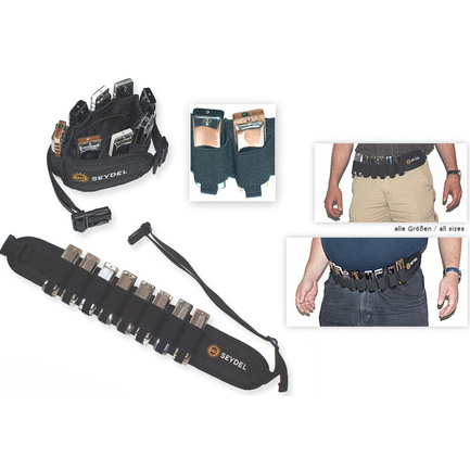 Szuper praktikus Seydel harmonikatartó öv 8 db blues szájharmonika számára.