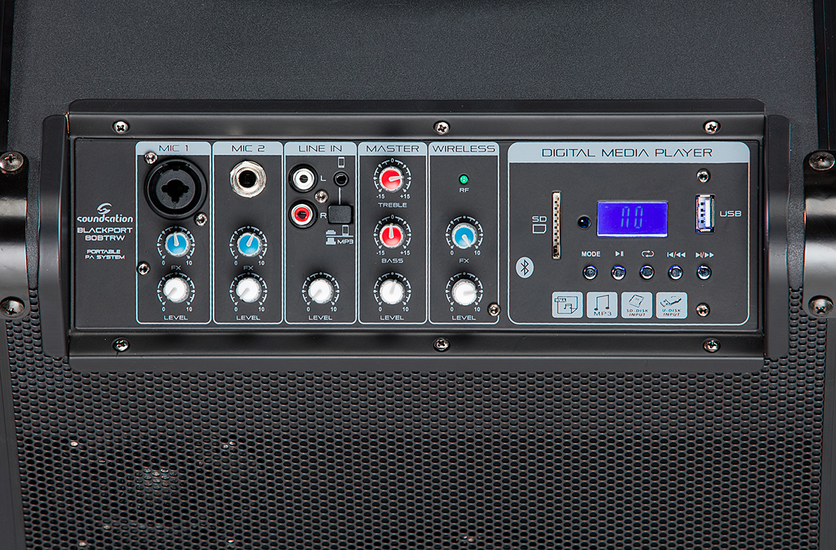- Blackport-80TBRW akkumulátoros 80W teljesítményű PA rendszer mindazok számára akiknek létfontosságú a hordozhatóság és folyamatosan úton vannak. Beépített 4 csatornás mixer , VHF vezeték nélküli mikrofon , reverb , BT , SD kártya olvasóval és USB csatlakozással felszerelt MP3 lejátszó. Az akkumulátor teljes töltésről 6 órán át képes üzemeltetni maximum hangerőn a PA rendszert. Könnyű súlyú , robusztus szerkezetű , így kiváló választás minden pörgős szituációra , legyen az kisebb party vagy fellépés.