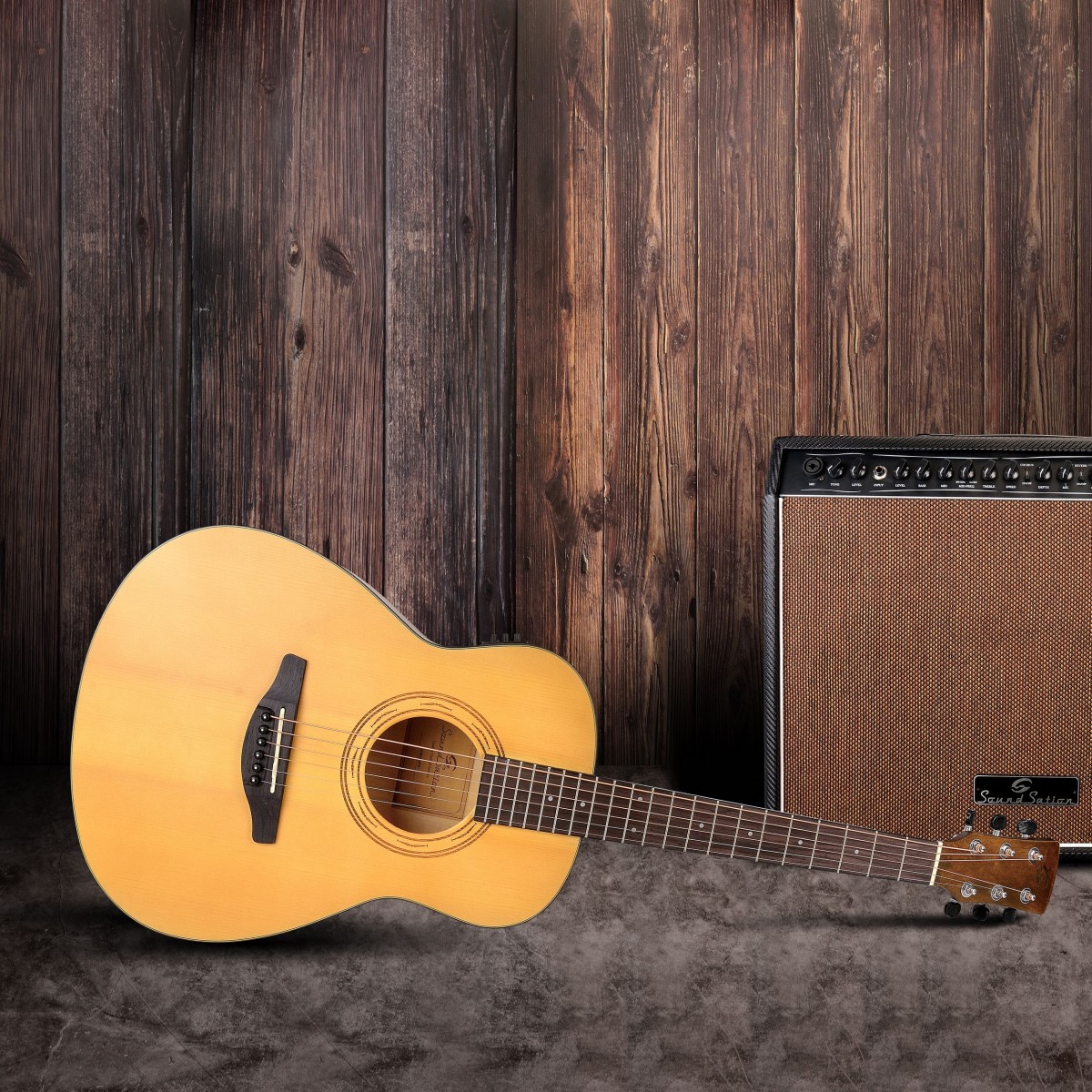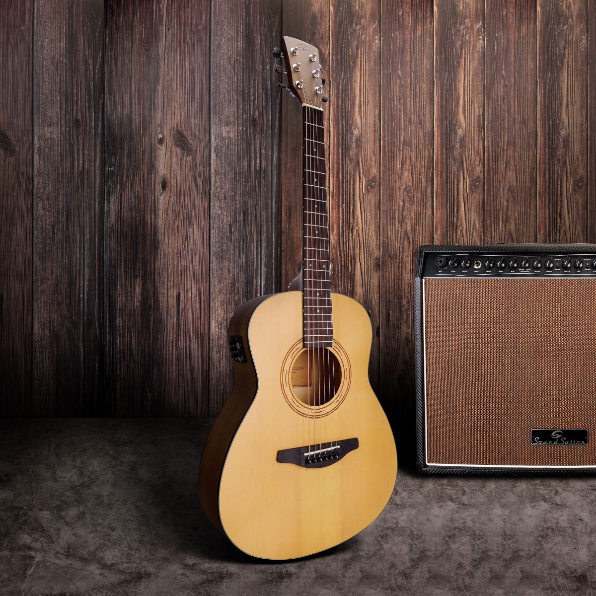 SOUNDSATION EN36CE-NTS - Compact akusztikus gitár, tömör lucfenyő fedlappal, gravírozott rozettával és előerősítővel