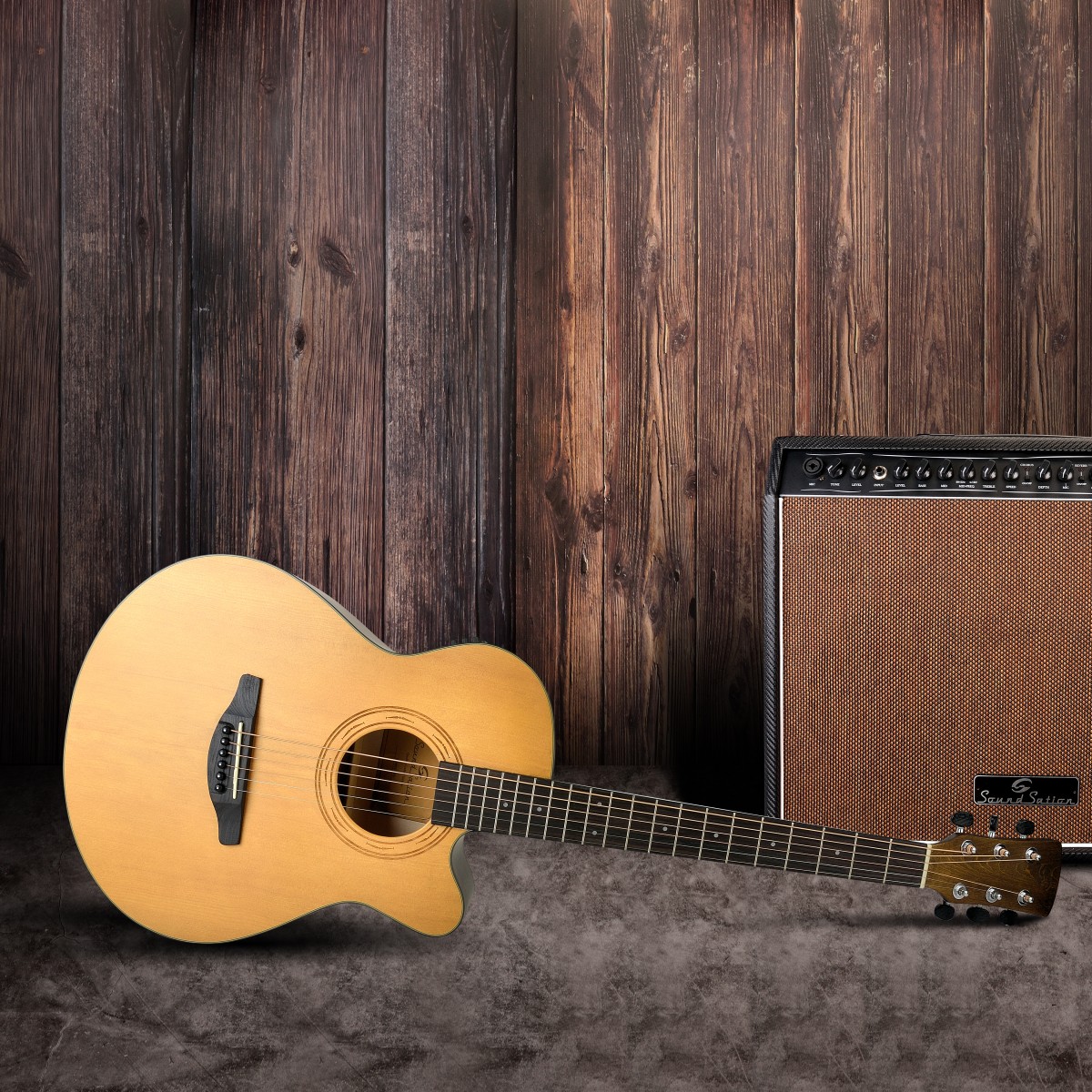 SOUNDSATION EN40CE-NTS - Orchestra cutaway akusztikus gitár, tömör lucfenyő fedlappal, gravírozott rozettával és előerősítővel