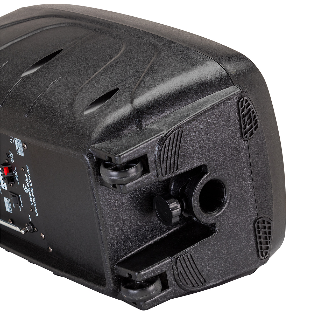 - Hordozható 2-utas aktív hangfal kerekekkel és újratölthető akkumulátorral