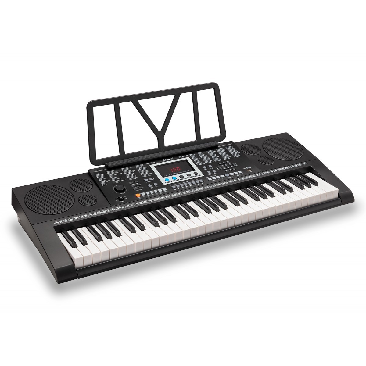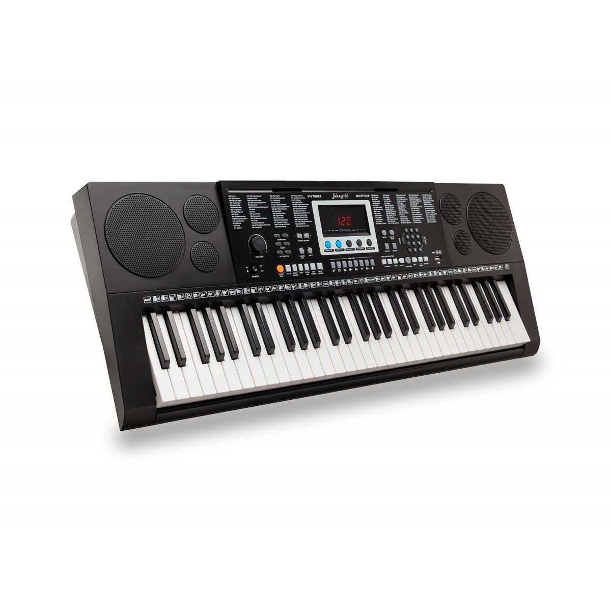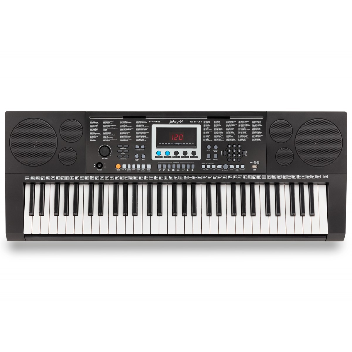 - A Soundsation JUKEY-61 billentyűzet tökéletes azoknak a kezdőknek, akik szeretnének elkezdeni zongorázni. A JUKEY-61 billentyűzet 61 zongoratípusú billentyűvel, 510 különböző hanggal, 300 kíséret stílussal és 30 demo dallal rendelkezik, amelyekkel gyakorolni lehet a játékot. Sustain pedál(nem tartozék) is hozzáadható a hitelesebb zongorajáték érdekében. A billentyűzet által kínált hangok és stílusok széles skálájának köszönhetően szórakozhat a különböző zenei műfajokban. Különféle formátumú(MP3, WAV, WMA) hangsávokat tud lejátszani az USB Host csatlakozásnak köszönhetően, ahová USB flash meghajtót lehet behelyezni. Az audiolejátszás két integrált 3 wattos hangszórón keresztül történik. A kompakt méret és az elemes működés lehetősége teszi ezt a billentyűzetet az iskolai használatra szánt hangszerré. Az összes funkció eredményeképpen olyan billentyűzetet kap, amely nagy értéket képvisel a piaci kínálatban.