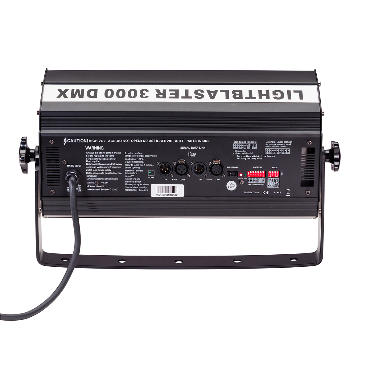 - A LIGHTBLASTER 3000 DMX rendkívül nagy teljesítményű professzionális stroboszkóp. 3000 W teljesítményű, hosszú élettartamú Xenon lámpával van felszerelve és DMX512 protokoll segítségével vezérelhető. Az egység intelligens túlmelegedés elleni elektronikus védelemmel rendelkezik.