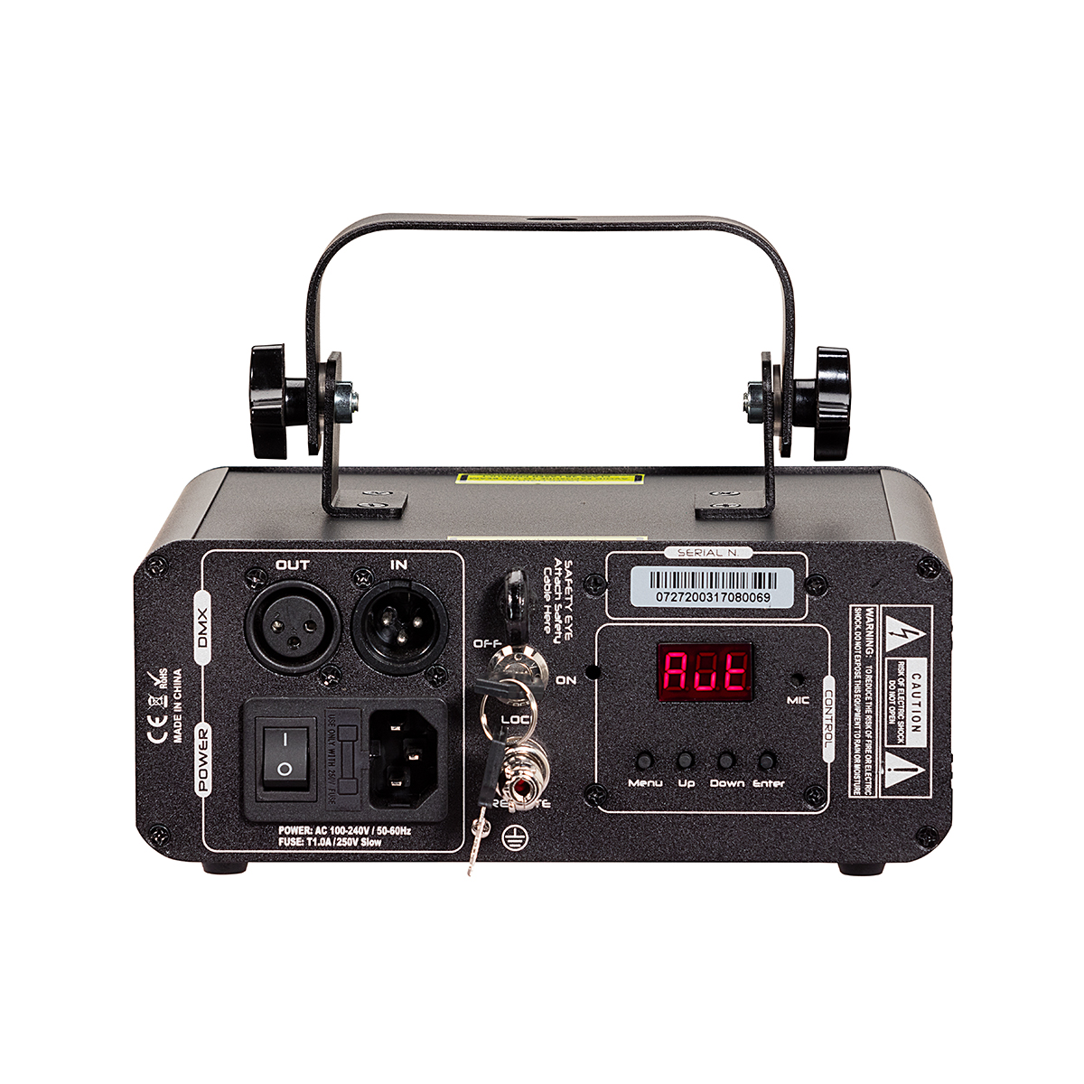 - 300mW RGB grafikus lézer (150mW R, 50mW G, 100mW B) a teljes színpalettás effektekhez