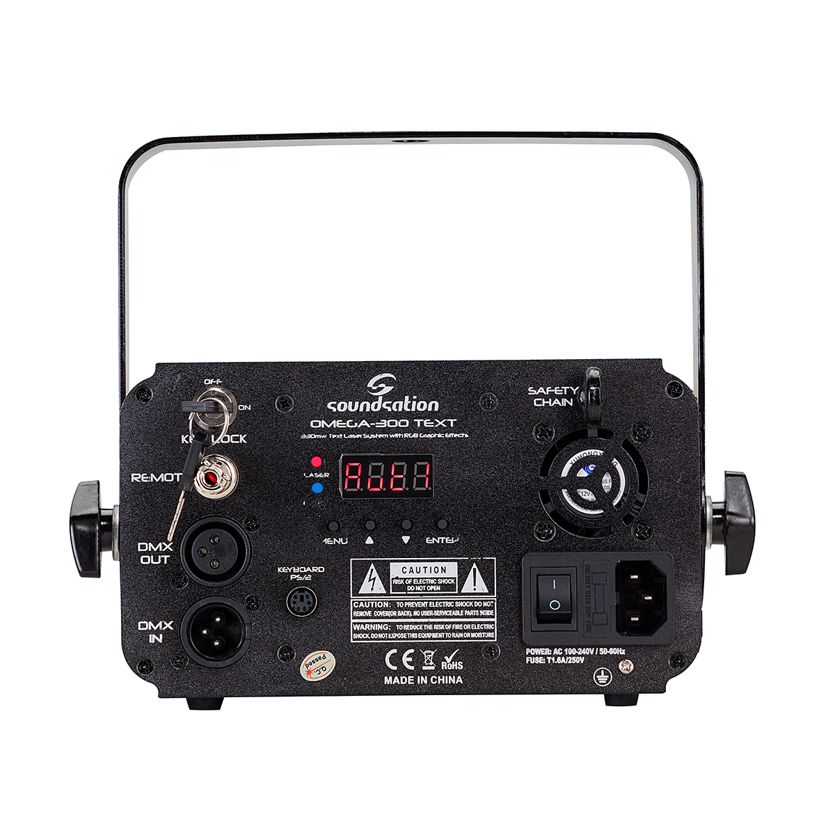 - A Soundsation OMEGA-330 TEXT egy új, professzionális lézerprojektor, amely a legkorszerűbb technológián alapul. Kiváló minőségű LED RGB lézersugárzóval és 10K professzionális optikai szkennerrel rendelkezik, amely fényes lézernyalábot és sima mintákat eredményez. A LED panel menüje, a PS/2 QWERTY billentyűzet és a praktikus távirányító ezt a készüléket rendkívül egyszerűen programozhatóvá és kényelmesen használhatóvá teszi. A beépített hagyományos mintázatok mellett számos működési mód is szerkeszthető. Ez a megfelelő választás mindazoknak a zenészeknek, DJ-knek és kis kölcsönzőknek, akiknek megbízható és sokoldalú eszközre van szükségük a grafikus és szöveges effektusok készítéséhez.