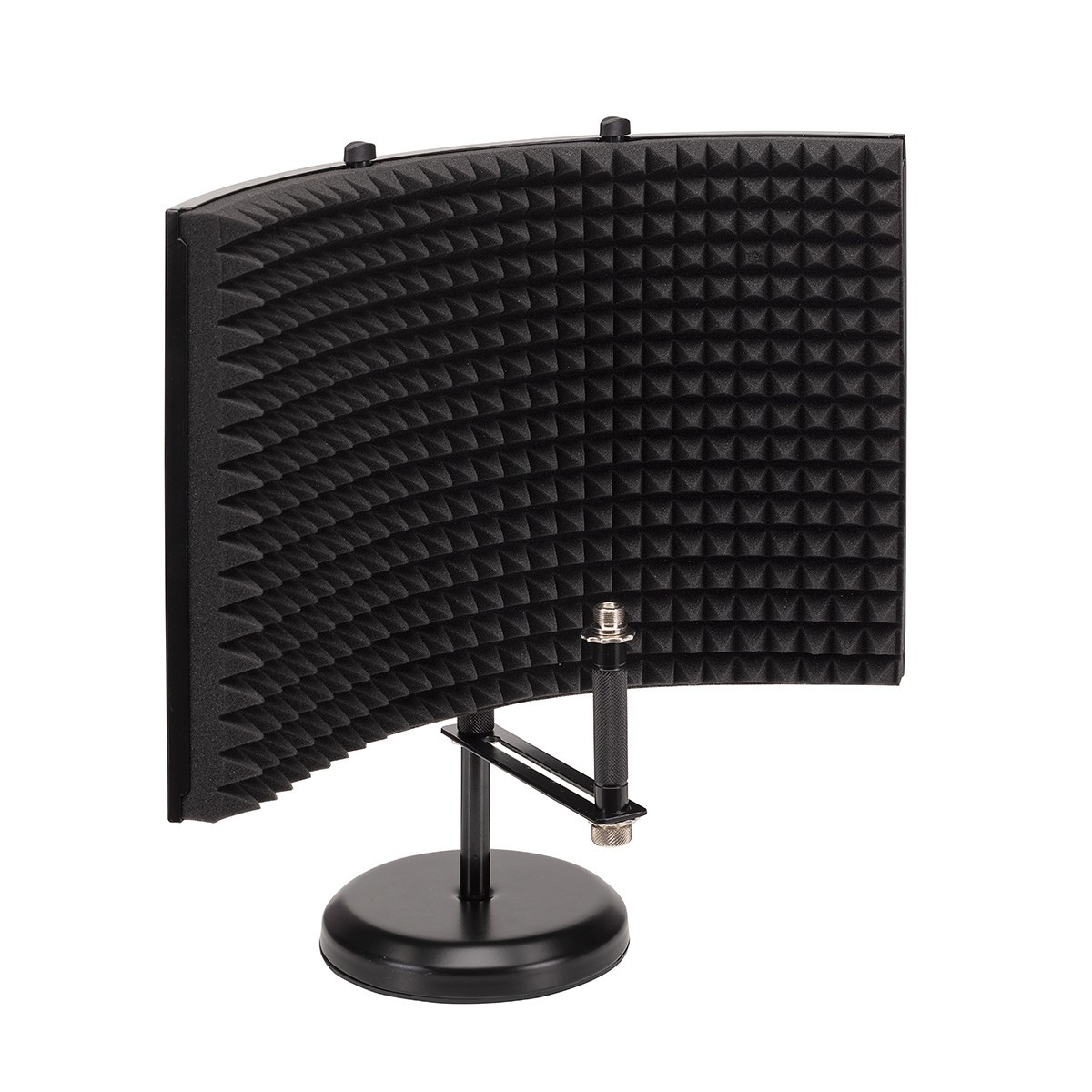 - Precisely engineer the detail and clarity of your recordings with SOUNSATION's SH-1000 Microphone isolation shield. The SOUNDSATION SH-1000 isolating microphone screen allows you to make your own recordings with clarity and precision in the details. The high density acoustic foam layer allows the microphone to "breathe" while dampening surrounding noise and limiting echoes and reflections. This creates cleaner, more focused audio. Two outer panels can easily be folded inward to create a tigther isolation chamber for detailed audio recording. The screen can be easily mounted on a microphone stand or on its optional table base. Its lightweight alluminium frame and foldable design ensure that the isolation shield is portable and easy to transport.