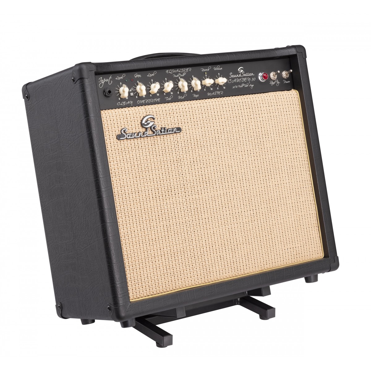 - A STAMP-100 egy kombinált gitárláda vagy kombóállvány, ideális hátradöntött kialakítással, amely lehetővé teszi erősítőjének megfelelő hallgatását. Stúdióra, próbára vagy színpadra alkalmas, kompakt és összecsukható kialakítású a könnyű hordozhatóság és tárolás érdekében.