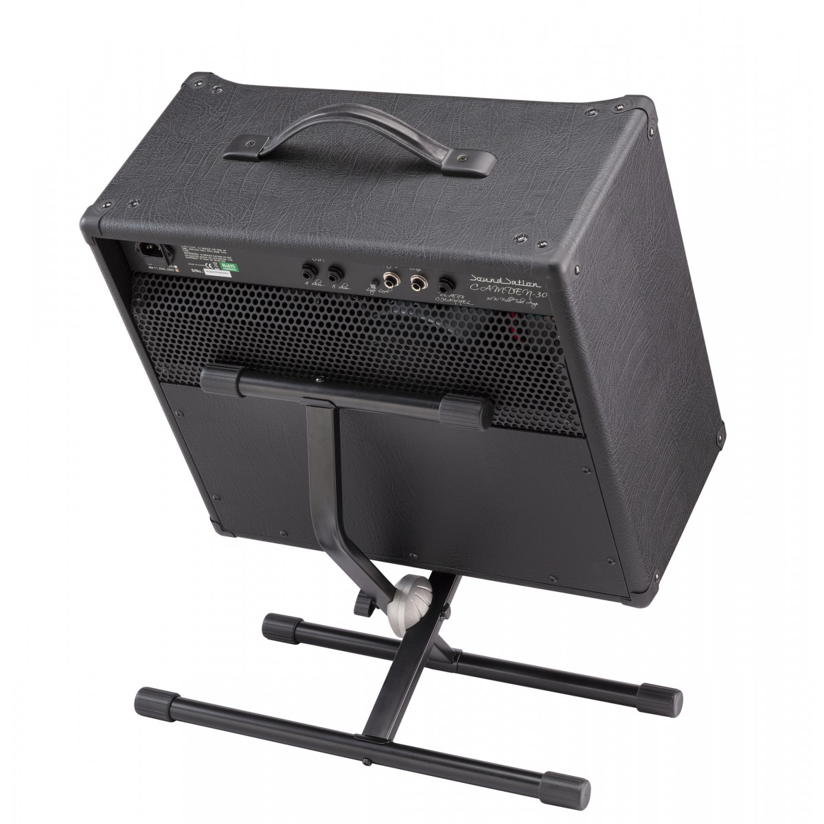- A STAMP-120 egy kombinált gitárláda vagy kombóállvány, állítható dőlésszöggel, hátradöntött kialakítással, amely lehetővé teszi erősítőjének megfelelő hallgatását. Alkalmas stúdióhoz, próbához, vagy színpadi játékhoz.