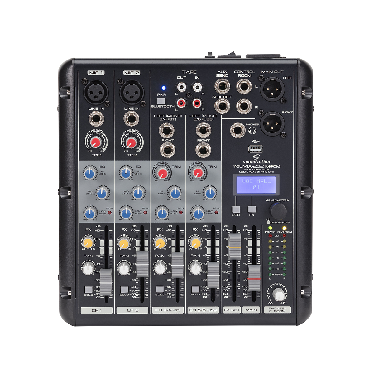 SOUNDSATION YOUMIX-202 MEDIA - 6-csatornás Professzionális keverő Media lejátszóval, BT és Digital Multi-Effekt funkciókkal