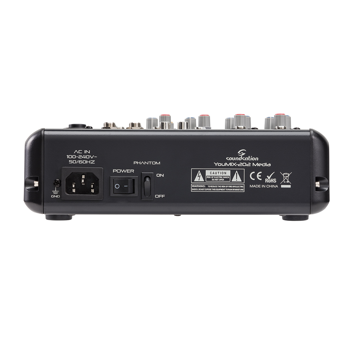 - YouMix széria kombinálja a hordozhatóságot a maximális minőséggel , különböző szűrőkkel. Minőségi SMD-ből készült komponenseinek köszönhetően kompakt kivitelben elfér mindaz, ami egyéb esetben nagyobb helyet igényelne: 60mm-es hangerő szabályzó, SOLO funkció,egy kijelző a digital-multieffect és USB lejátszó számára,BT csatlakozási lehetőség. A szériában két modell elérhető: 2 illetve 4 mic/line csatornás keverő(Plusz 2 Line sztereó bement): YouMix-202 Media és YouMix-402 Media. Ideálisak élőzenéhez,otthoni használathoz,podcast típusú műsorokhoz, és minden olyan szituációhoz ahol fontos szempont a fő funkciók elérhetősége egy kompakt kivitelben. A mikrofon előerősítő alacsony zajszinttel és széles torzításmentes tartománnyal rendelkezik, így garantálja a tiszta és természetes hangzást , független a csatlakoztatható mikrofon típusától: kondenzátor mikrofon(+48V fantomtáppal),dinamikus mikrofon,line signals/high impedance típusú eszközök. A digital-multieffect 256 előbeállítást kínál , melyben megtalálja a legtöbbet használt effekteket is (Room,Hall,Vocal,Plate reverbs,Delay,Echo,Chorus,Flanger,Combo). Az USB lejátszó MP3 típusú fájlok lejátszására alkalmas(egészen 48kHz 32-bit@320kbps-ig), a BT kapcsolódási lehetőség segítségével pedig gördülékenyen streamelhető bármilyen audió forrás. Az USB lejátszó és BT az egyik sztereó line bemeneten fut, így kihasználva az in-line csatorna vezérlőket(Gain,2-Band EQ,FX send ,Pan és Solo). A YouMix képviseli az olyan kompakt megoldásokat ahol a minőség elengedhetetlen szempont.