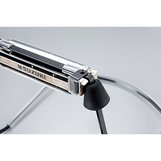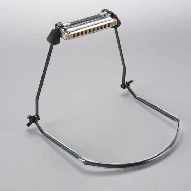 Egyszerűen használható szájharmonika tartó, amely lehetővé teszi a kézhasználat nélküli harmonikázást. A harmonikák könnyedén beleilleszthetők az állítható tartóba. Elsősorban 10 lyukú szájharmonikákhoz készült.