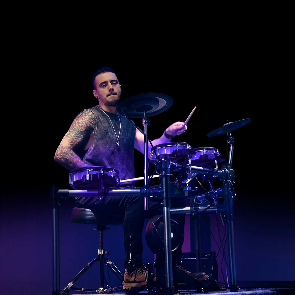 - Crash és Ride: 12" kétzónás, tompítással, LED