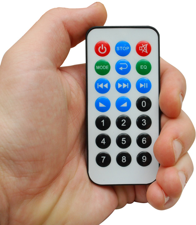 - Távirányítóval szabályozható funkciók: rádió/mp3/Bluetooth váltás, hangerőszabályzás, hangszínszabályzás, rádió csatorna váltás, mp3 léptetés, stb. (a távirányító csak a rádió/mp3/Bluetooth modult vezérli)
