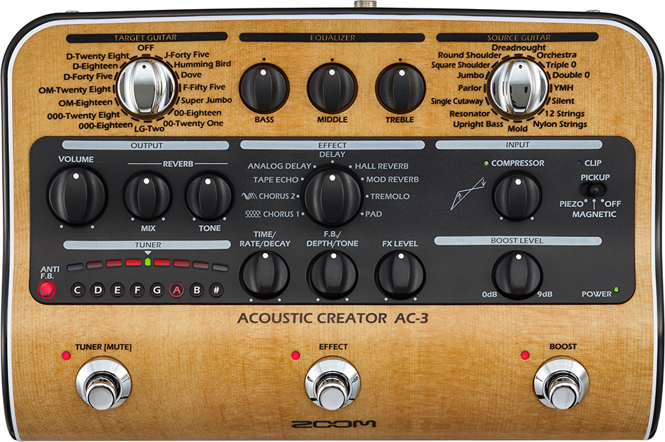 16 forrás gitár presettel, mint pl. a Dreadnought, 12 String, Triple 0 vagy az Upright Bass az AC-3 szimulálni tudja a különböző testformákat és méreteket és helyreállítja azon hangzásrészeket, amelyek a pickup hangszedés által amúgy elvesznek. A gitáros kikeresi az egyes presetek által a neki megfelelő hangszert, és gondoskodik arról, hogy ezt a hangzást egy erősítő rendszer autentikusan hangosítsa.